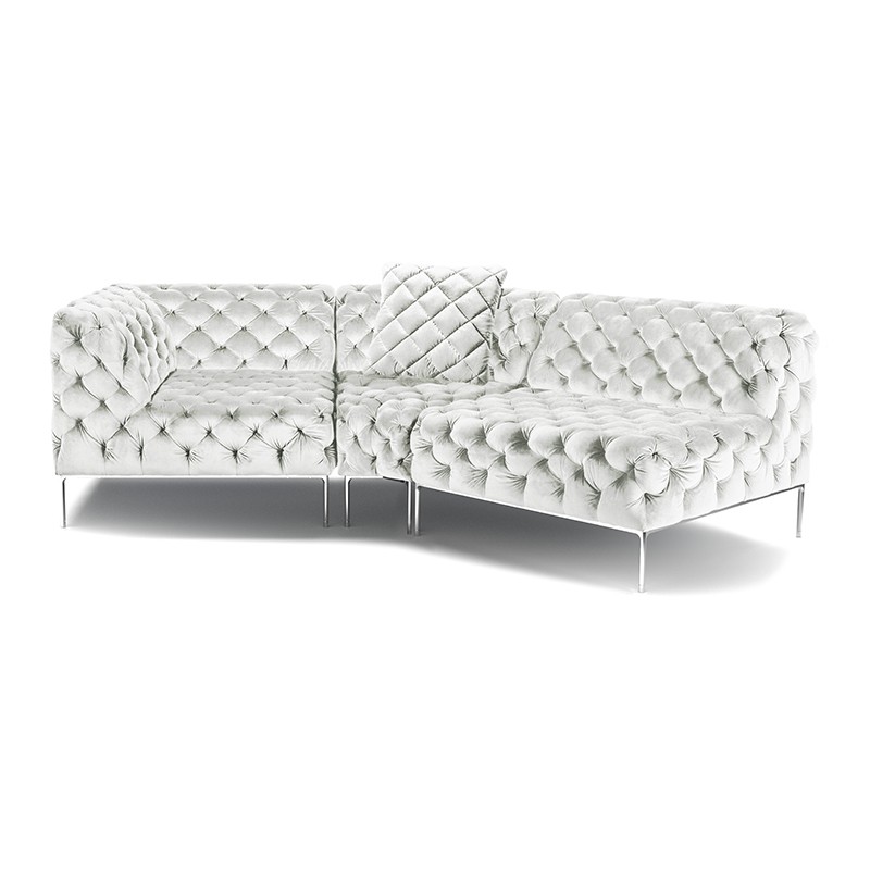 リズミカルにステッチ(タフティング加工)を施したクラシックなチェスターフィールド調のソファを、モダンにアレンジしたデザインです。