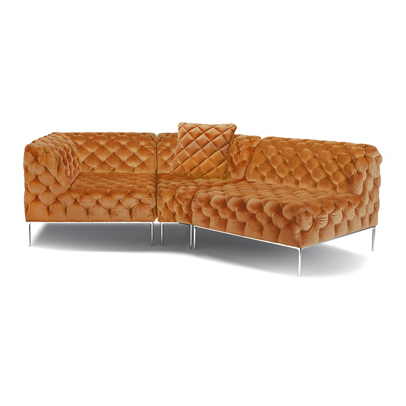 リズミカルにステッチ(タフティング加工)を施したクラシックなチェスターフィールド調のソファを、モダンにアレンジしたデザインです。