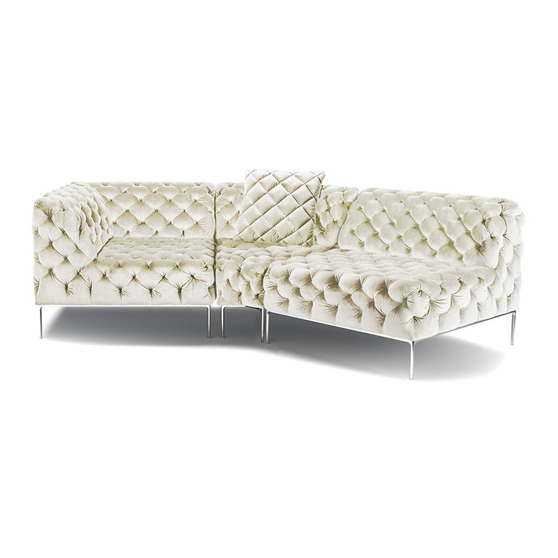 リズミカルにステッチ(タフティング加工)を施したクラシックなチェスターフィールド調のソファを、モダンにアレンジしたデザインです。