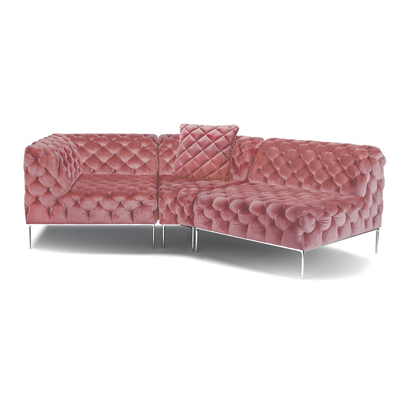 リズミカルにステッチ(タフティング加工)を施したクラシックなチェスターフィールド調のソファを、モダンにアレンジしたデザインです。