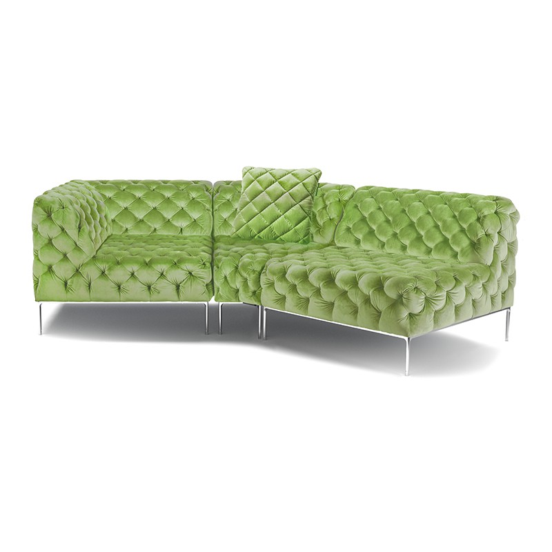 リズミカルにステッチ(タフティング加工)を施したクラシックなチェスターフィールド調のソファを、モダンにアレンジしたデザインです。