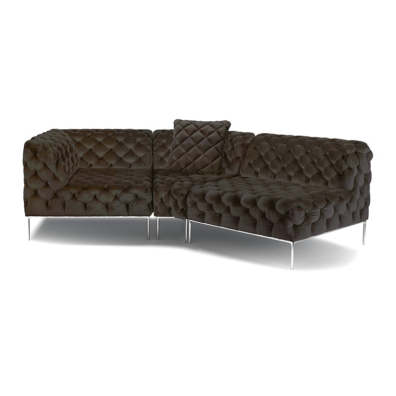 リズミカルにステッチ(タフティング加工)を施したクラシックなチェスターフィールド調のソファを、モダンにアレンジしたデザインです。