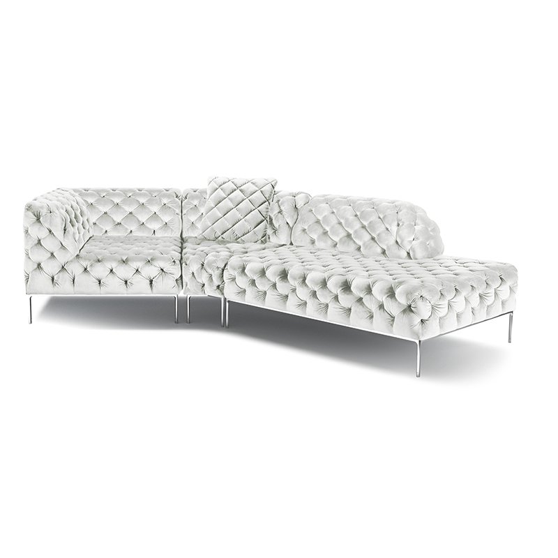 リズミカルにステッチ(タフティング加工)を施したクラシックなチェスターフィールド調のソファを、モダンにアレンジしたデザインです。