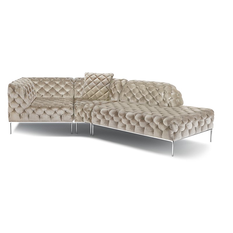 リズミカルにステッチ(タフティング加工)を施したクラシックなチェスターフィールド調のソファを、モダンにアレンジしたデザインです。
