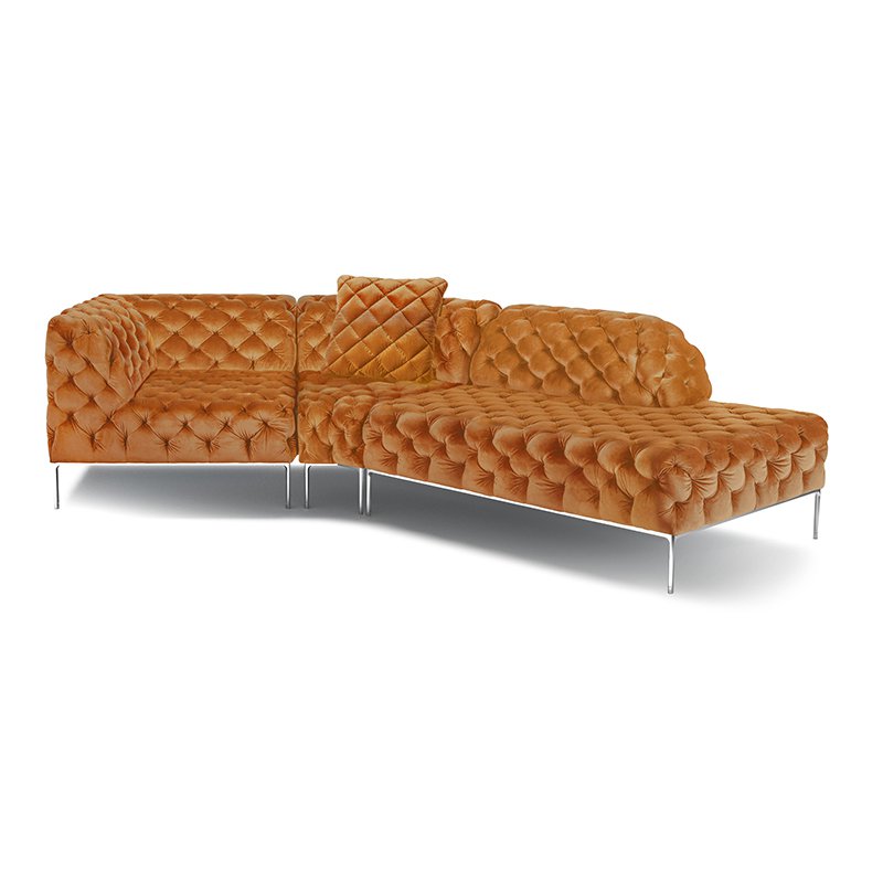 リズミカルにステッチ(タフティング加工)を施したクラシックなチェスターフィールド調のソファを、モダンにアレンジしたデザインです。