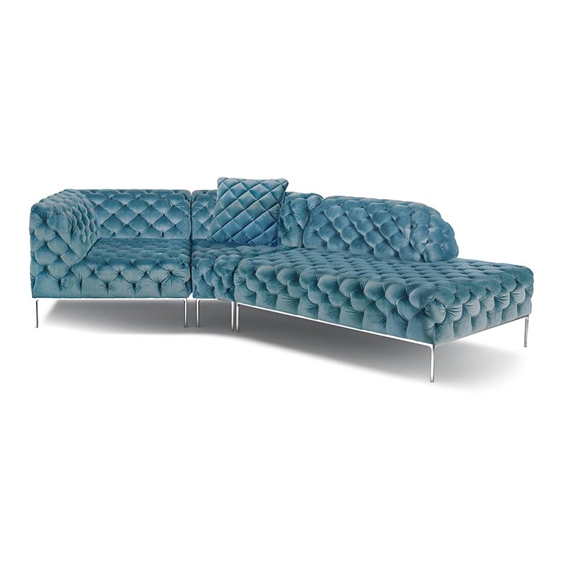 リズミカルにステッチ(タフティング加工)を施したクラシックなチェスターフィールド調のソファを、モダンにアレンジしたデザインです。