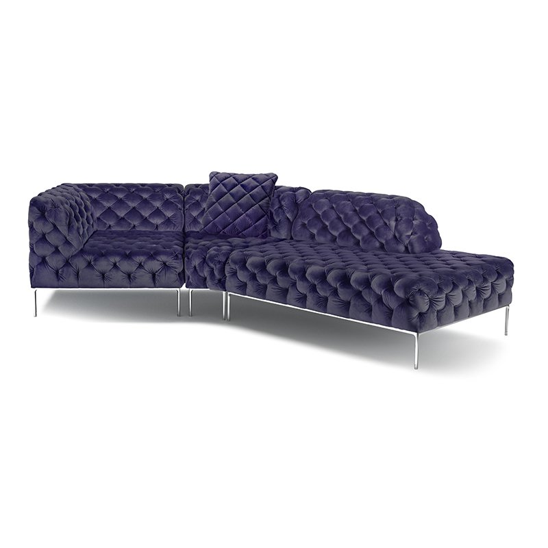リズミカルにステッチ(タフティング加工)を施したクラシックなチェスターフィールド調のソファを、モダンにアレンジしたデザインです。