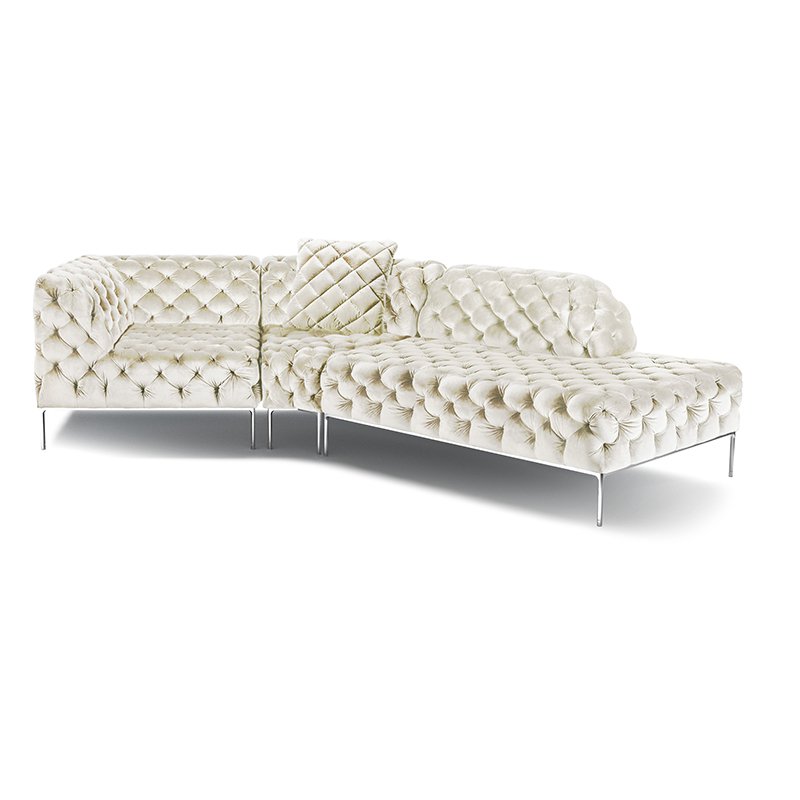 リズミカルにステッチ(タフティング加工)を施したクラシックなチェスターフィールド調のソファを、モダンにアレンジしたデザインです。