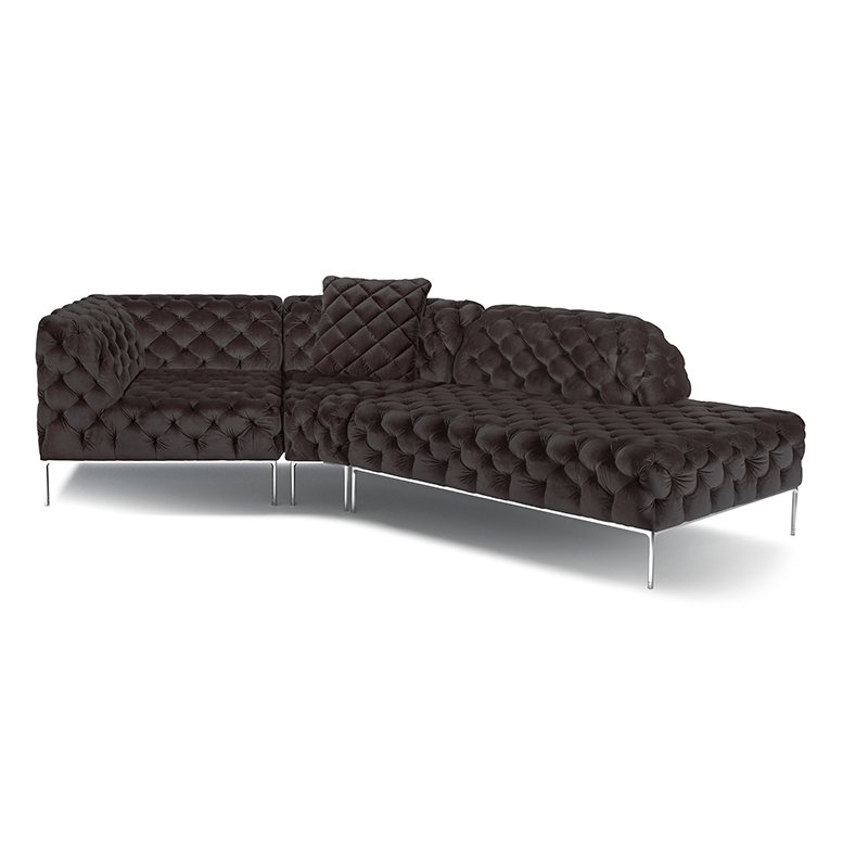 リズミカルにステッチ(タフティング加工)を施したクラシックなチェスターフィールド調のソファを、モダンにアレンジしたデザインです。