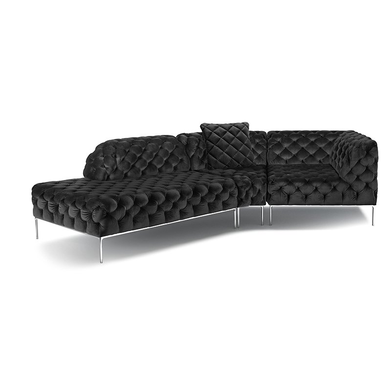 リズミカルにステッチ(タフティング加工)を施したクラシックなチェスターフィールド調のソファを、モダンにアレンジしたデザインです。