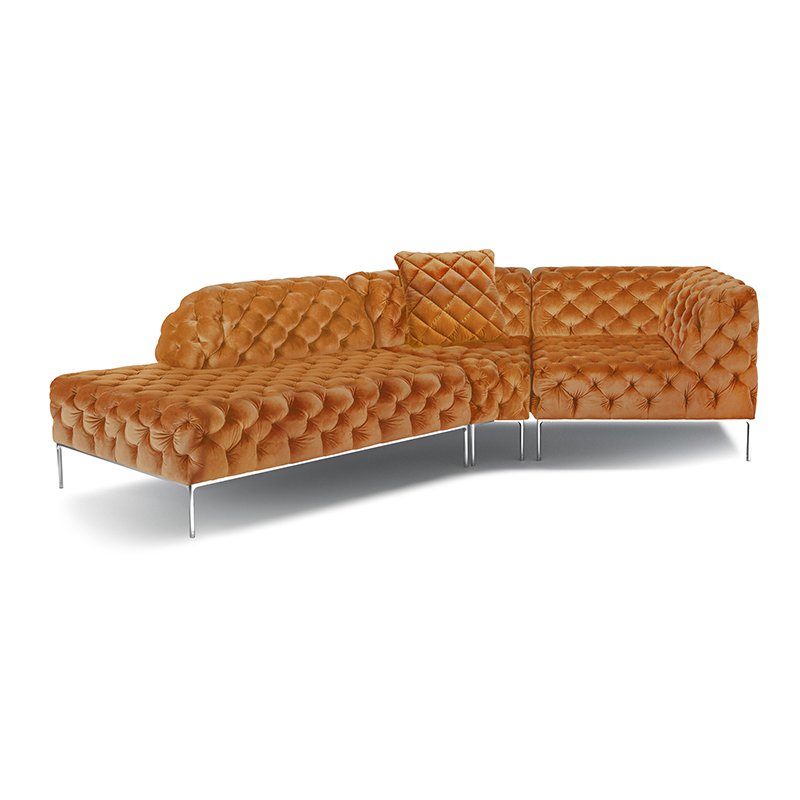 リズミカルにステッチ(タフティング加工)を施したクラシックなチェスターフィールド調のソファを、モダンにアレンジしたデザインです。