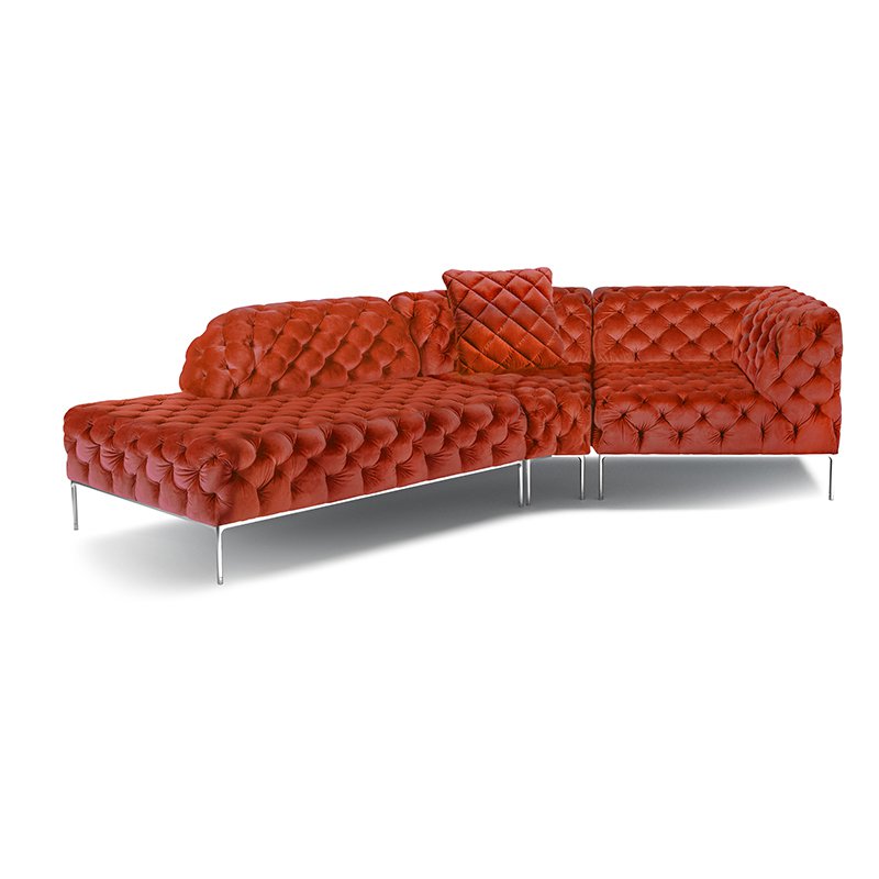 リズミカルにステッチ(タフティング加工)を施したクラシックなチェスターフィールド調のソファを、モダンにアレンジしたデザインです。