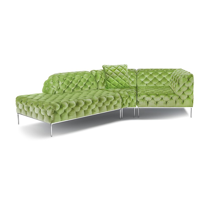 リズミカルにステッチ(タフティング加工)を施したクラシックなチェスターフィールド調のソファを、モダンにアレンジしたデザインです。