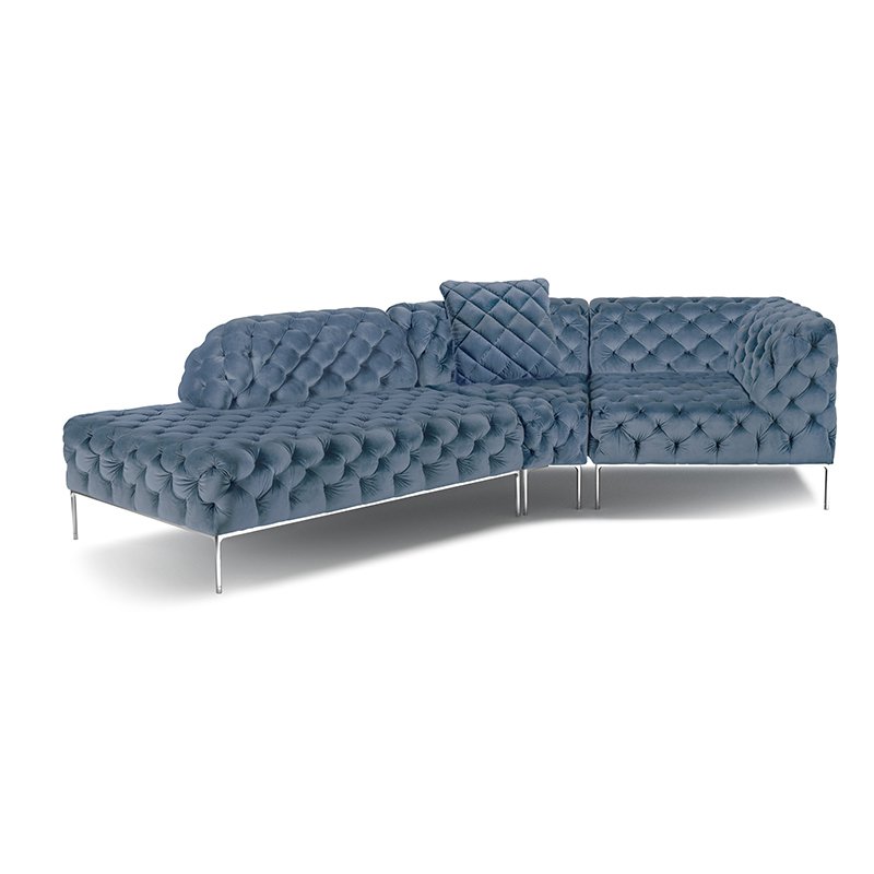 リズミカルにステッチ(タフティング加工)を施したクラシックなチェスターフィールド調のソファを、モダンにアレンジしたデザインです。