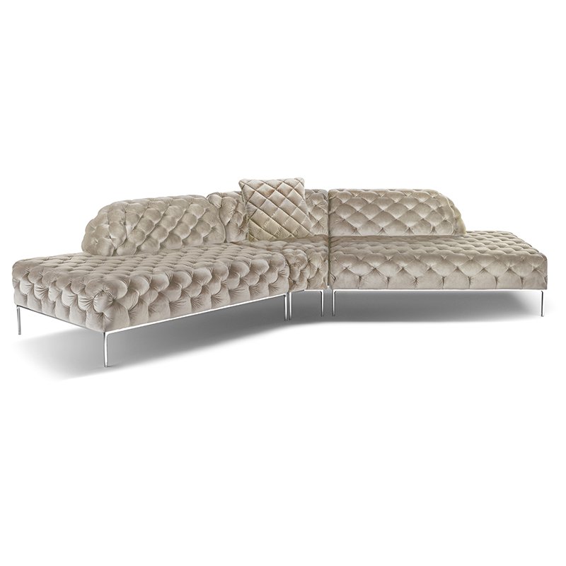 リズミカルにステッチ(タフティング加工)を施したクラシックなチェスターフィールド調のソファを、モダンにアレンジしたデザインです。