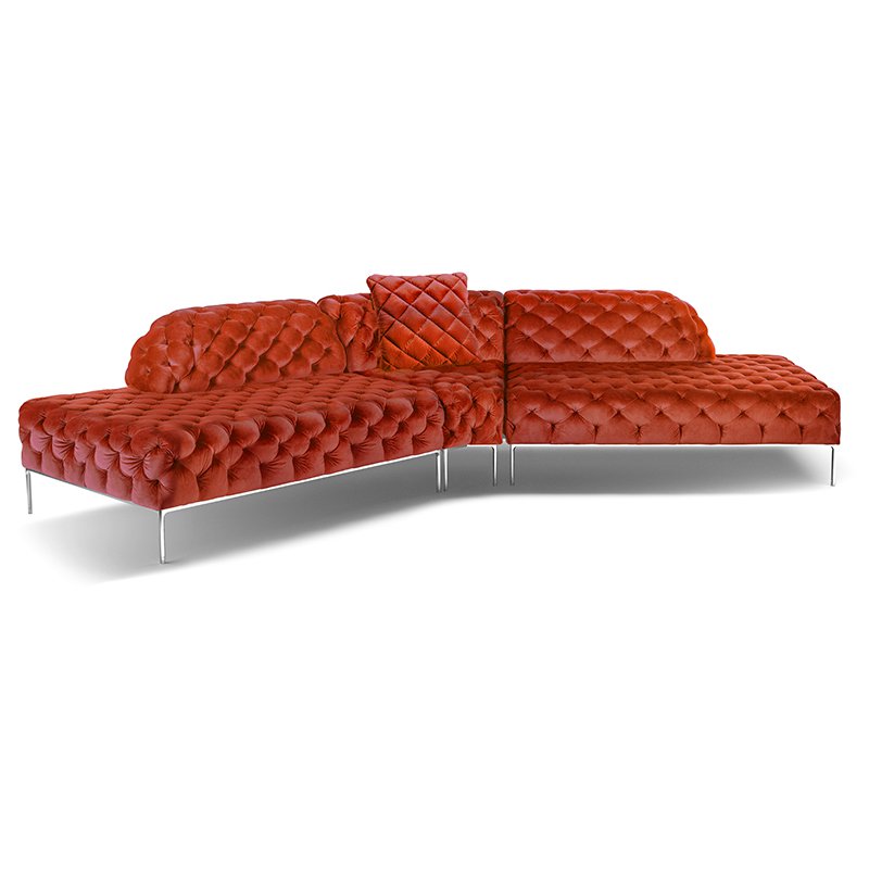 リズミカルにステッチ(タフティング加工)を施したクラシックなチェスターフィールド調のソファを、モダンにアレンジしたデザインです。