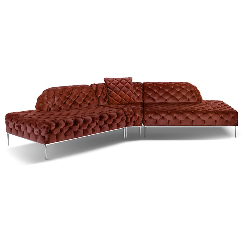 リズミカルにステッチ(タフティング加工)を施したクラシックなチェスターフィールド調のソファを、モダンにアレンジしたデザインです。