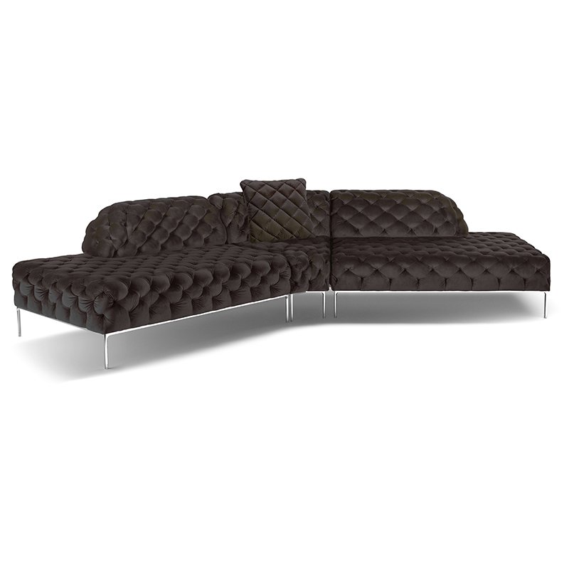 リズミカルにステッチ(タフティング加工)を施したクラシックなチェスターフィールド調のソファを、モダンにアレンジしたデザインです。