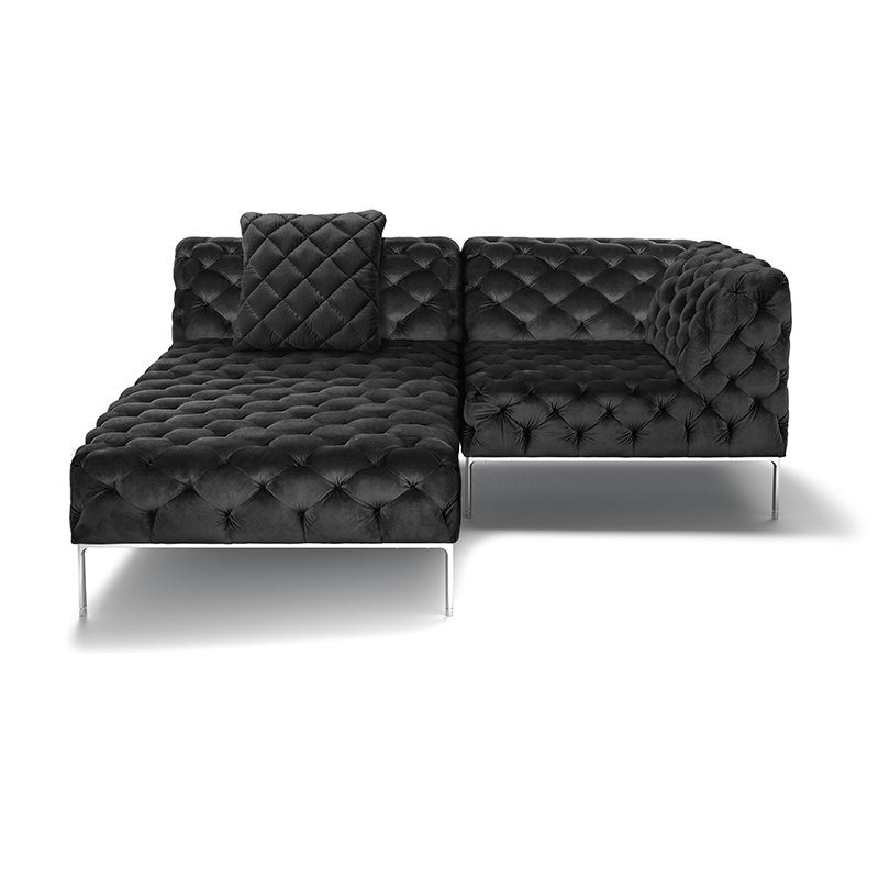 リズミカルにステッチ(タフティング加工)を施したクラシックなチェスターフィールド調のソファを、モダンにアレンジしたデザインです。