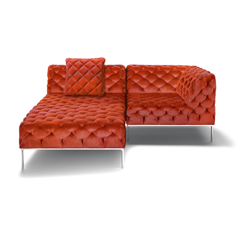 リズミカルにステッチ(タフティング加工)を施したクラシックなチェスターフィールド調のソファを、モダンにアレンジしたデザインです。