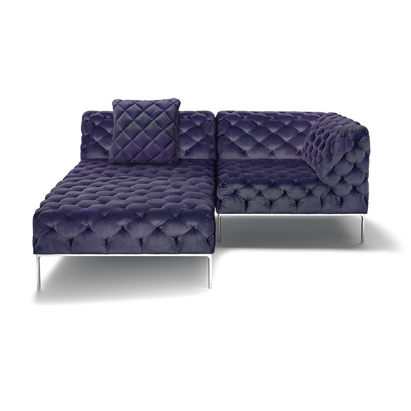 リズミカルにステッチ(タフティング加工)を施したクラシックなチェスターフィールド調のソファを、モダンにアレンジしたデザインです。