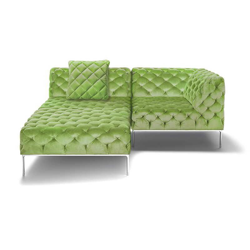 リズミカルにステッチ(タフティング加工)を施したクラシックなチェスターフィールド調のソファを、モダンにアレンジしたデザインです。
