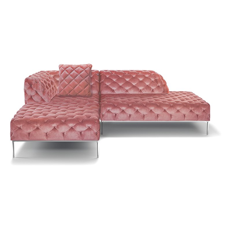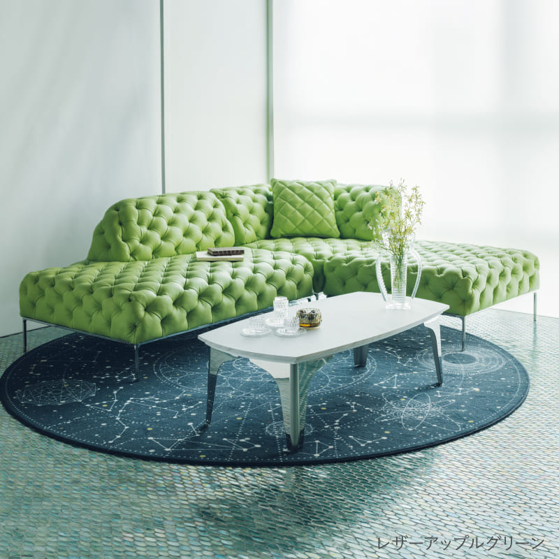 リズミカルにステッチ(タフティング加工)を施したクラシックなチェスターフィールド調のソファを、モダンにアレンジしたデザインです。
