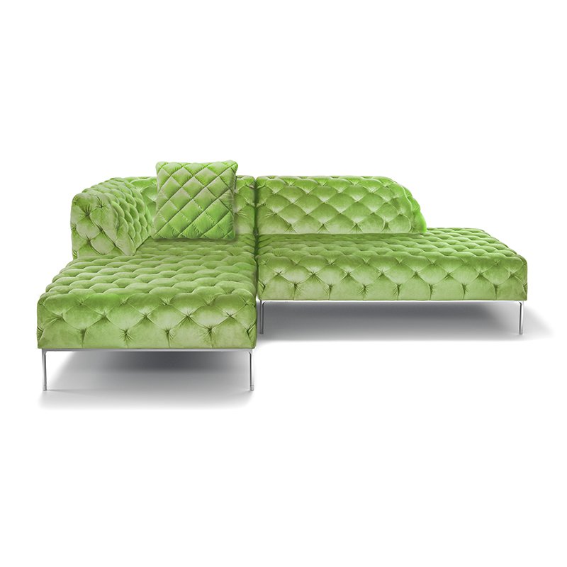 リズミカルにステッチ(タフティング加工)を施したクラシックなチェスターフィールド調のソファを、モダンにアレンジしたデザインです。