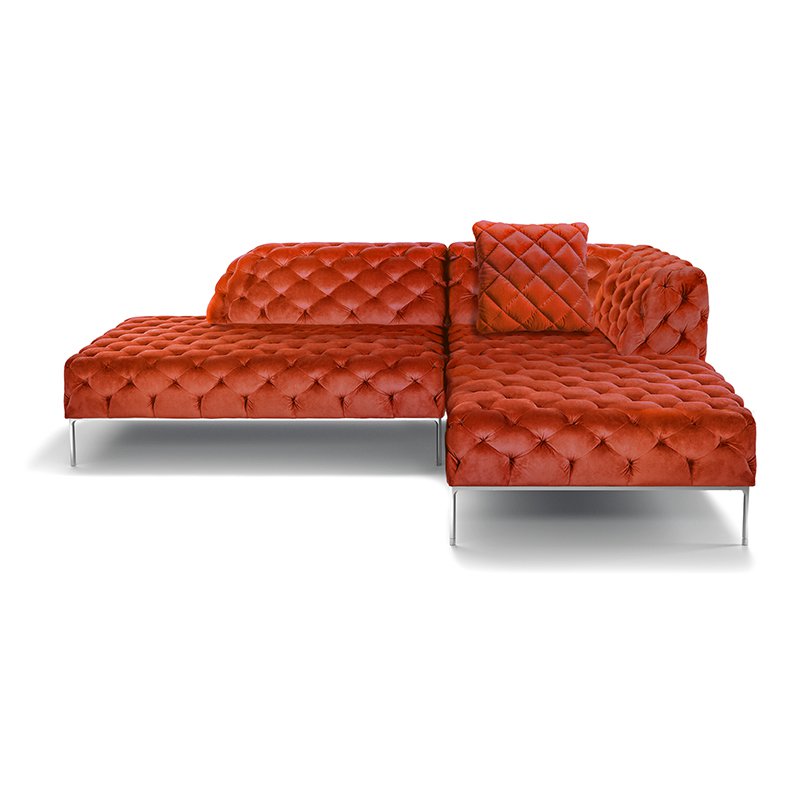 リズミカルにステッチ(タフティング加工)を施したクラシックなチェスターフィールド調のソファを、モダンにアレンジしたデザインです。