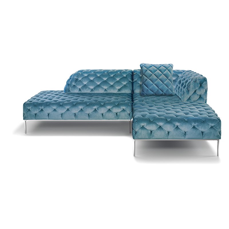 リズミカルにステッチ(タフティング加工)を施したクラシックなチェスターフィールド調のソファを、モダンにアレンジしたデザインです。