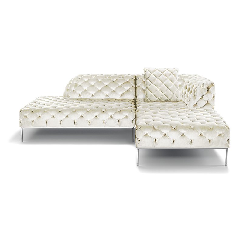 リズミカルにステッチ(タフティング加工)を施したクラシックなチェスターフィールド調のソファを、モダンにアレンジしたデザインです。