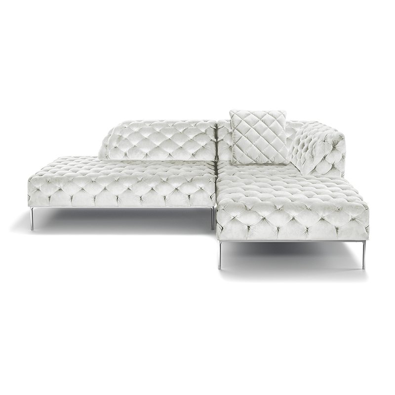 リズミカルにステッチ(タフティング加工)を施したクラシックなチェスターフィールド調のソファを、モダンにアレンジしたデザインです。