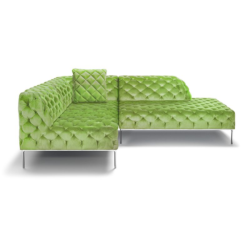 リズミカルにステッチ(タフティング加工)を施したクラシックなチェスターフィールド調のソファを、モダンにアレンジしたデザインです。