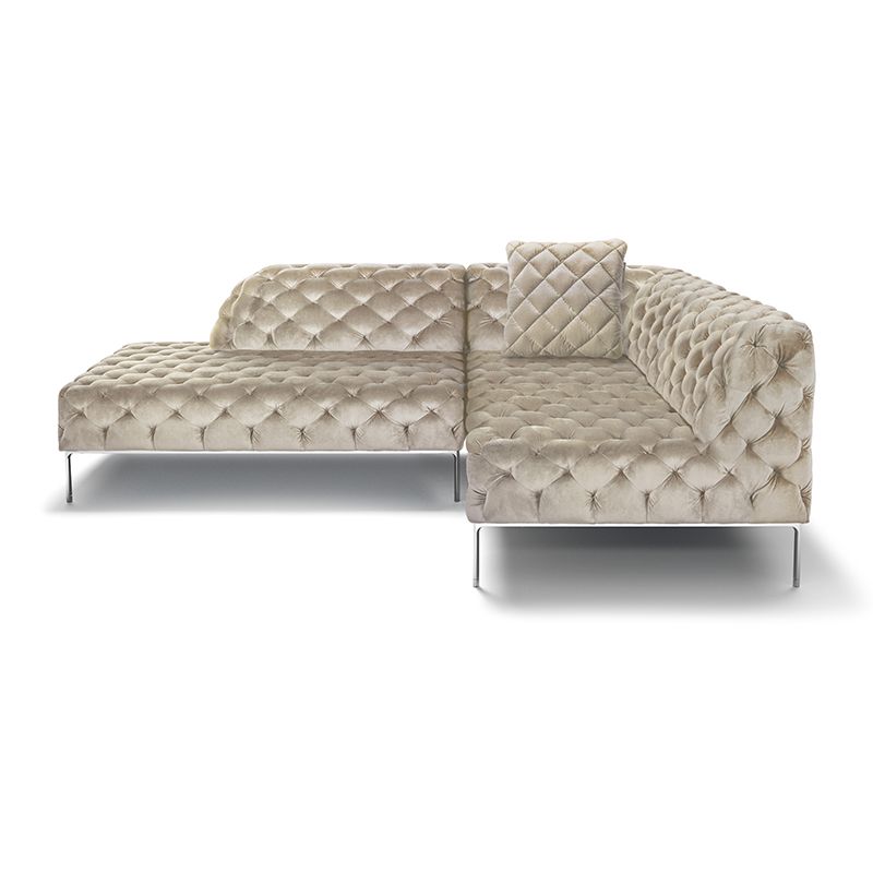 リズミカルにステッチ(タフティング加工)を施したクラシックなチェスターフィールド調のソファを、モダンにアレンジしたデザインです。