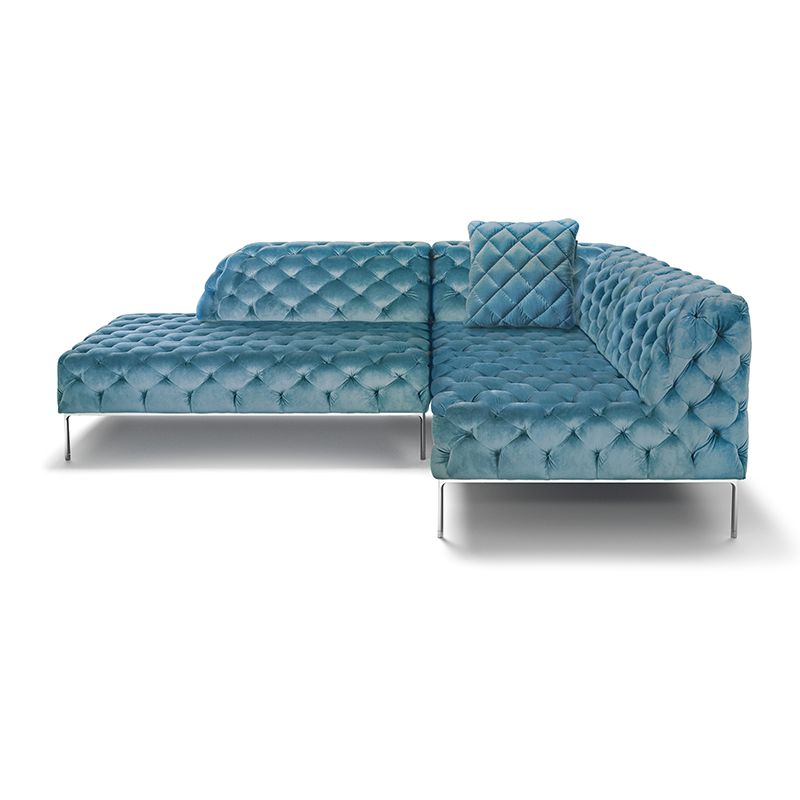 リズミカルにステッチ(タフティング加工)を施したクラシックなチェスターフィールド調のソファを、モダンにアレンジしたデザインです。