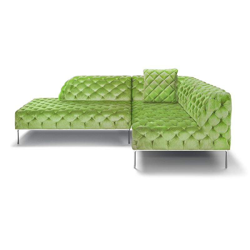 リズミカルにステッチ(タフティング加工)を施したクラシックなチェスターフィールド調のソファを、モダンにアレンジしたデザインです。