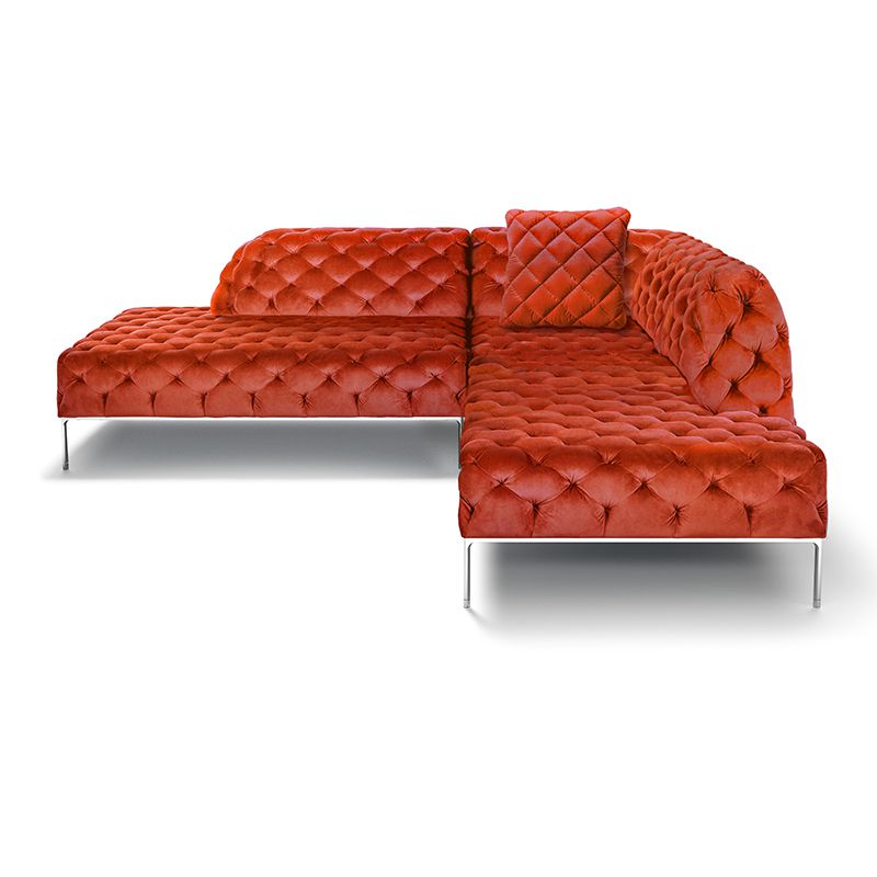 リズミカルにステッチ(タフティング加工)を施したクラシックなチェスターフィールド調のソファを、モダンにアレンジしたデザインです。