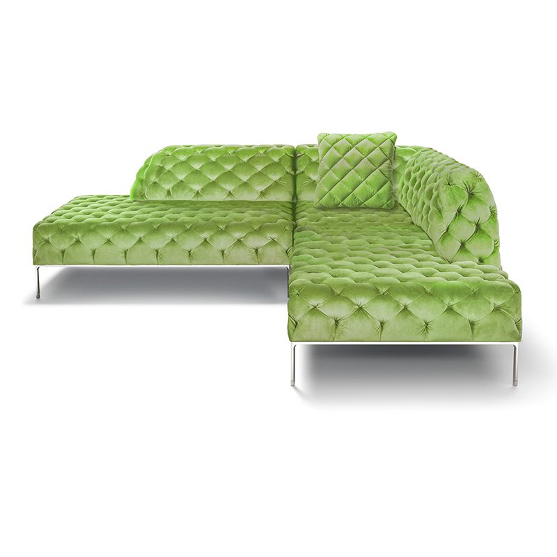 リズミカルにステッチ(タフティング加工)を施したクラシックなチェスターフィールド調のソファを、モダンにアレンジしたデザインです。