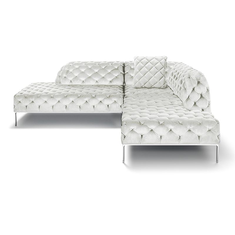 リズミカルにステッチ(タフティング加工)を施したクラシックなチェスターフィールド調のソファを、モダンにアレンジしたデザインです。