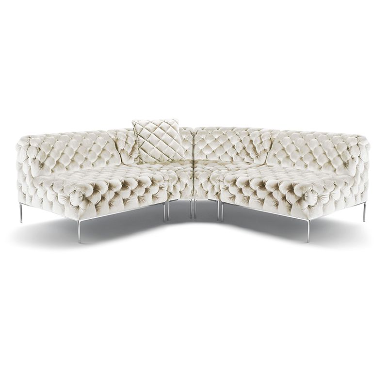 リズミカルにステッチ(タフティング加工)を施したクラシックなチェスターフィールド調のソファを、モダンにアレンジしたデザインです。