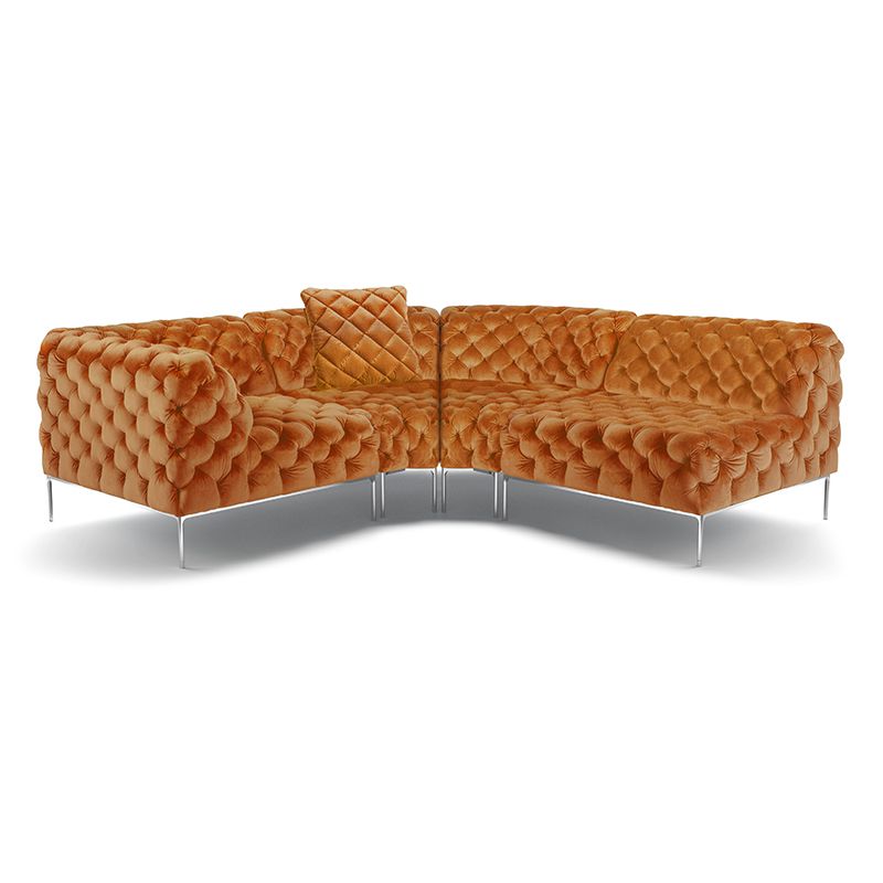 リズミカルにステッチ(タフティング加工)を施したクラシックなチェスターフィールド調のソファを、モダンにアレンジしたデザインです。