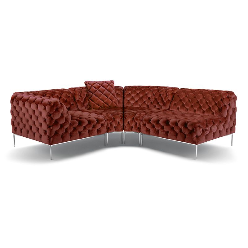 リズミカルにステッチ(タフティング加工)を施したクラシックなチェスターフィールド調のソファを、モダンにアレンジしたデザインです。