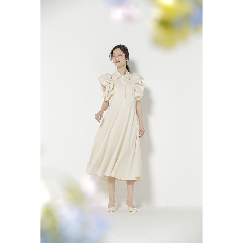 ボリューム感のあるバルーンスリーブがトレンド感と女性らしさを演出しながら、華奢に見せてくれます。ストレッチ性のある生地を使用しています。