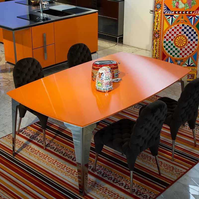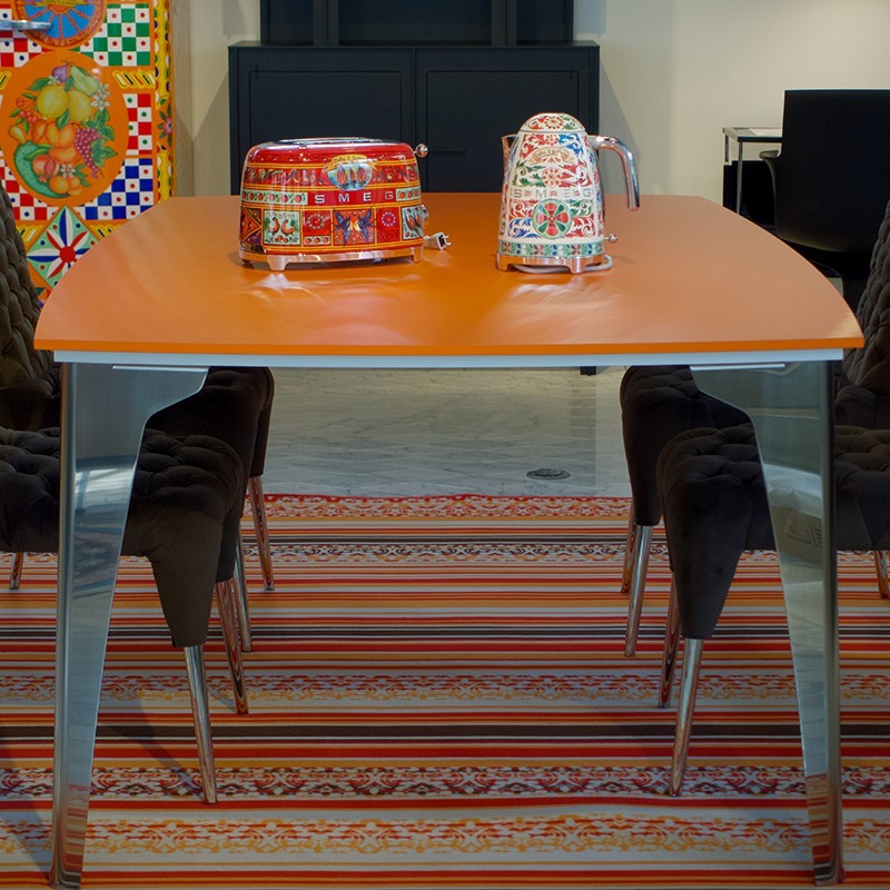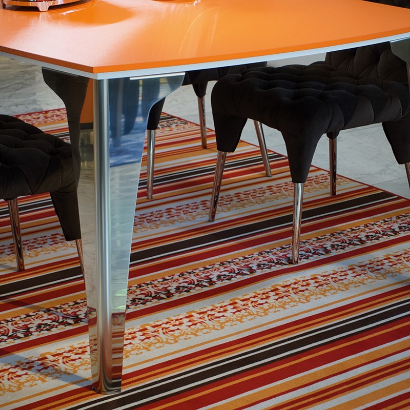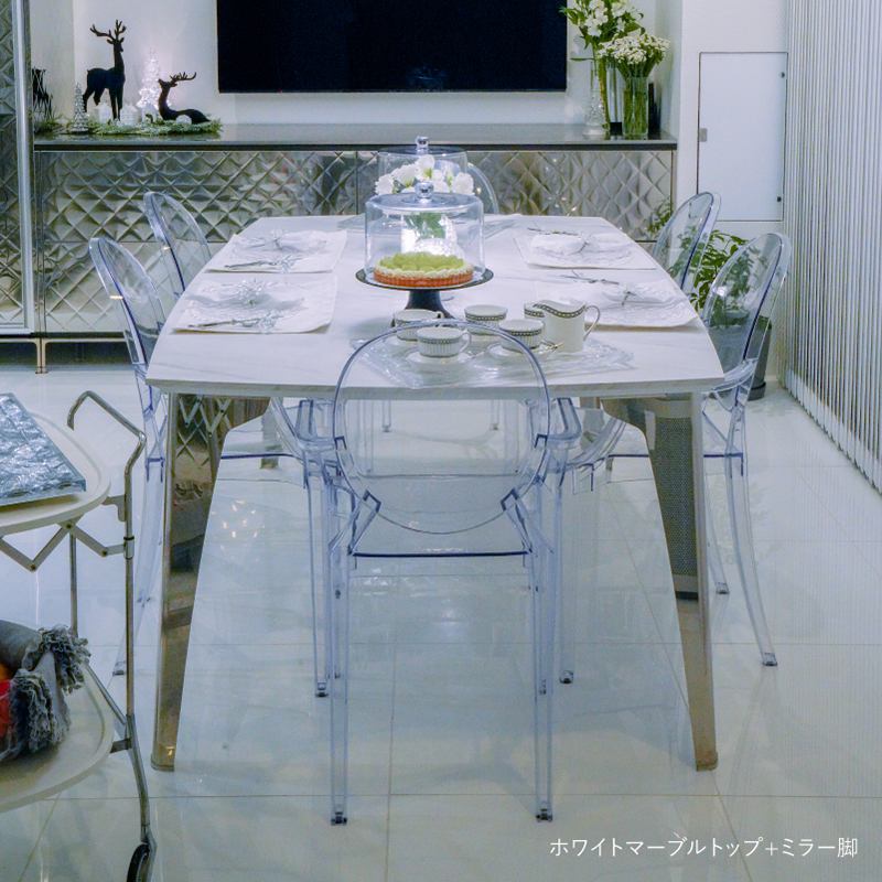 テーブルトップを支えるのは金属製の美しい脚。一枚の紙を折ることでさなざまな姿に形を変え同時に構造的な強度を保つことができるように変化する折り紙をヒントにデザインされています。
