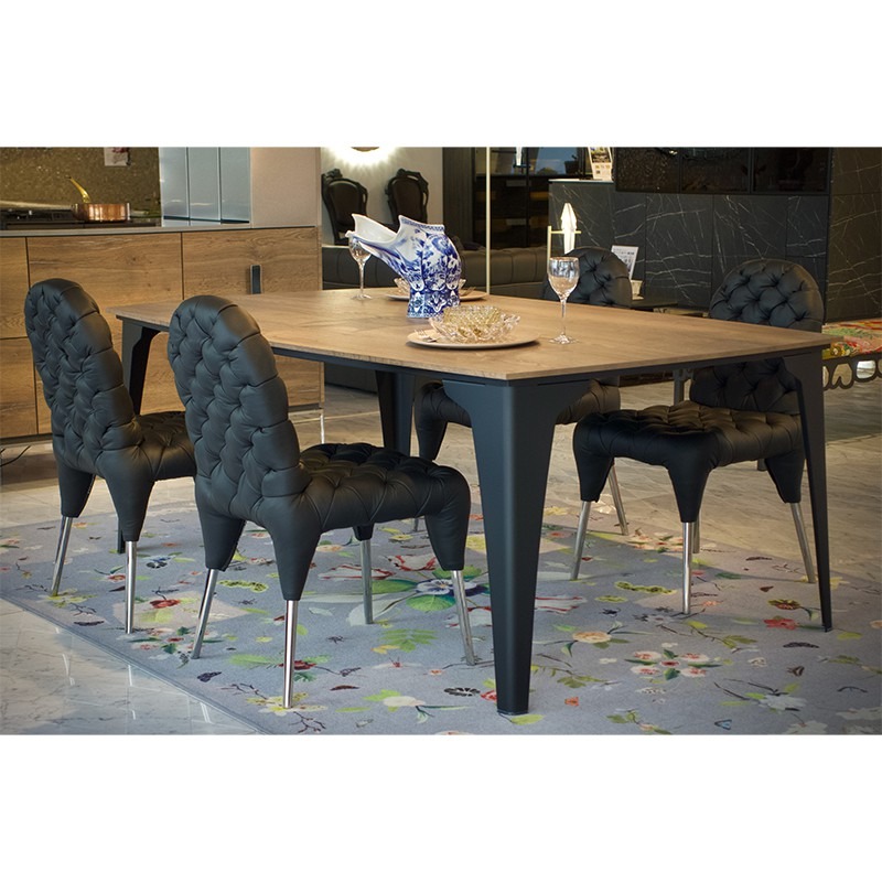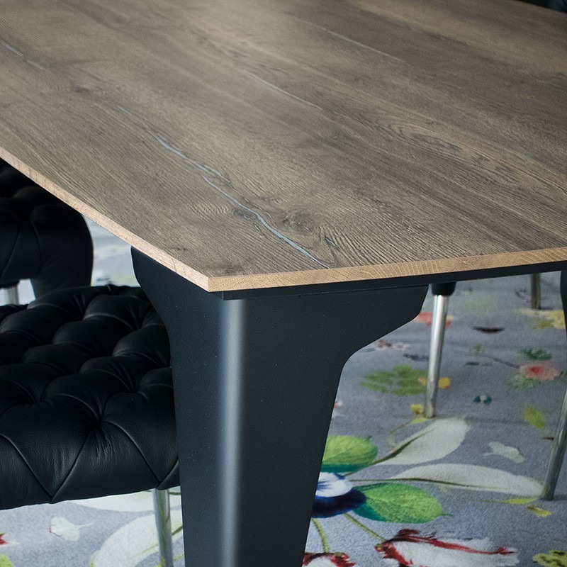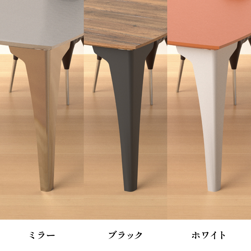テーブルトップを支えるのは金属製の美しい脚。一枚の紙を折ることでさなざまな姿に形を変え同時に構造的な強度を保つことができるように変化する折り紙をヒントにデザインされています。