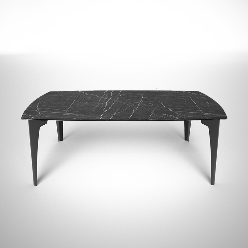 テーブルトップを支えるのは金属製の美しい脚。一枚の紙を折ることでさなざまな姿に形を変え同時に構造的な強度を保つことができるように変化する折り紙をヒントにデザインされています。