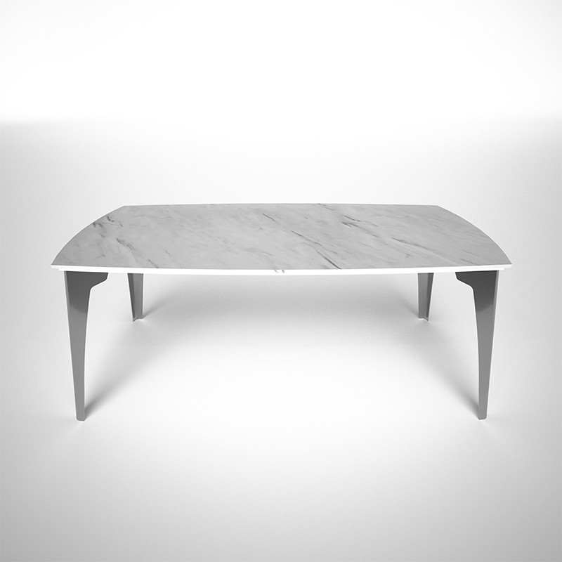 テーブルトップを支えるのは金属製の美しい脚。一枚の紙を折ることでさなざまな姿に形を変え同時に構造的な強度を保つことができるように変化する折り紙をヒントにデザインされています。