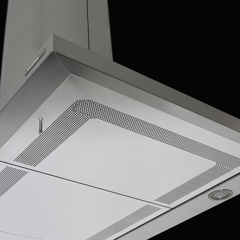 部屋で違和感のない薄型でスマートなデザイン。レンジグリスフィルターの縁に給気口を施した「高速整流板」を採用したレンジフードです。