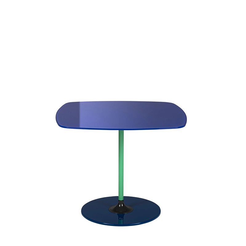 ファッション性の高いボルドー、クラシックなシーブルー、エレガントなロンドンスモークグレーなど、艷やかで光沢のあるガラステーブルとフレーム、ベースは同じ色調の中で対象的な組み合わせになっています。