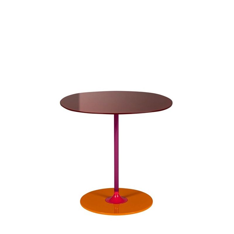 ファッション性の高いボルドー、クラシックなシーブルー、エレガントなロンドンスモークグレーなど、艷やかで光沢のあるガラステーブルとフレーム、ベースは同じ色調の中で対象的な組み合わせになっています。